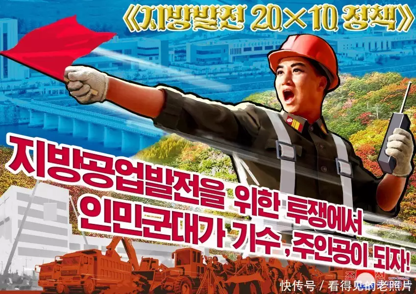 朝鮮黨中央號(hào)召以地方工業(yè)發(fā)展戰(zhàn)略爭(zhēng)取全國(guó)同時(shí)均衡的飛躍發(fā)展,使輝煌變遷成為不可爭(zhēng)辯的現(xiàn)實(shí),全面改善地方人民的物質(zhì)文化生活的堅(jiān)定決心和意志躍然活現(xiàn)在宣傳畫“增進(jìn)人民福利的〈地方發(fā)展20×10政策〉!”?!拔覀凕h的夙愿、宏偉的革命!”里。