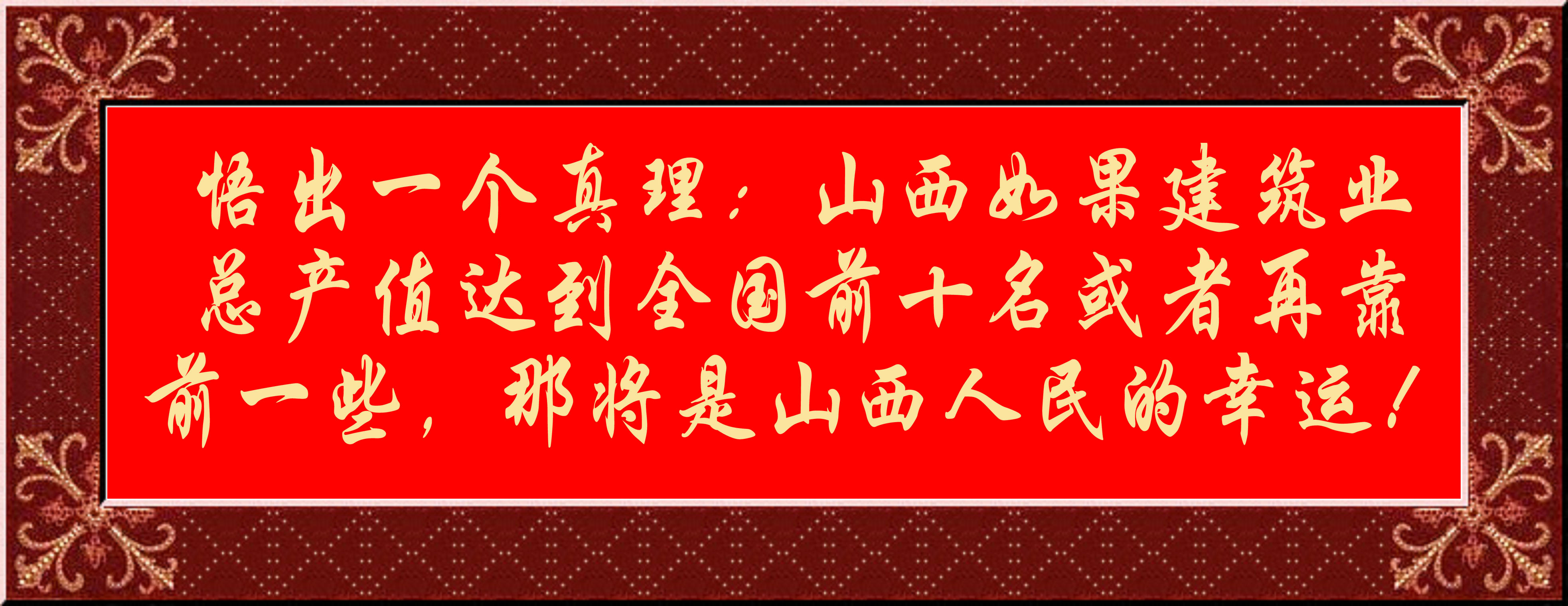 今年,有這樣的機遇,七悟八悟,悟出一個真理:山西如果建筑業(yè)總產(chǎn)值達到全國前十名或者再靠前一些,那將是山西人民的幸運!