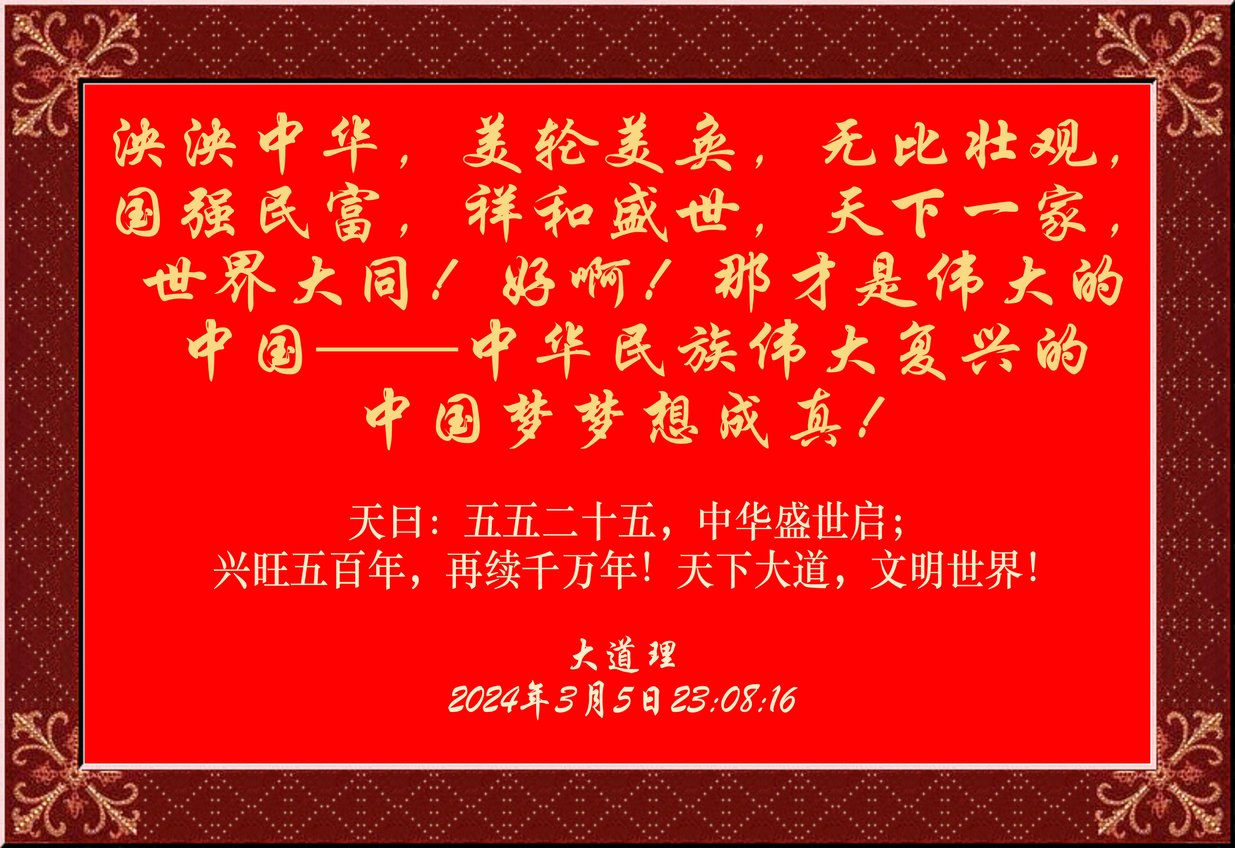 三十年后是哪一年?2054年!已經(jīng)是建國一百零五年的時候了!那個時候中華大地是什么景致和美景呢?泱泱中華,美輪美奐,無比壯觀,國強民富,祥和盛世,天下一家,世界大同!
