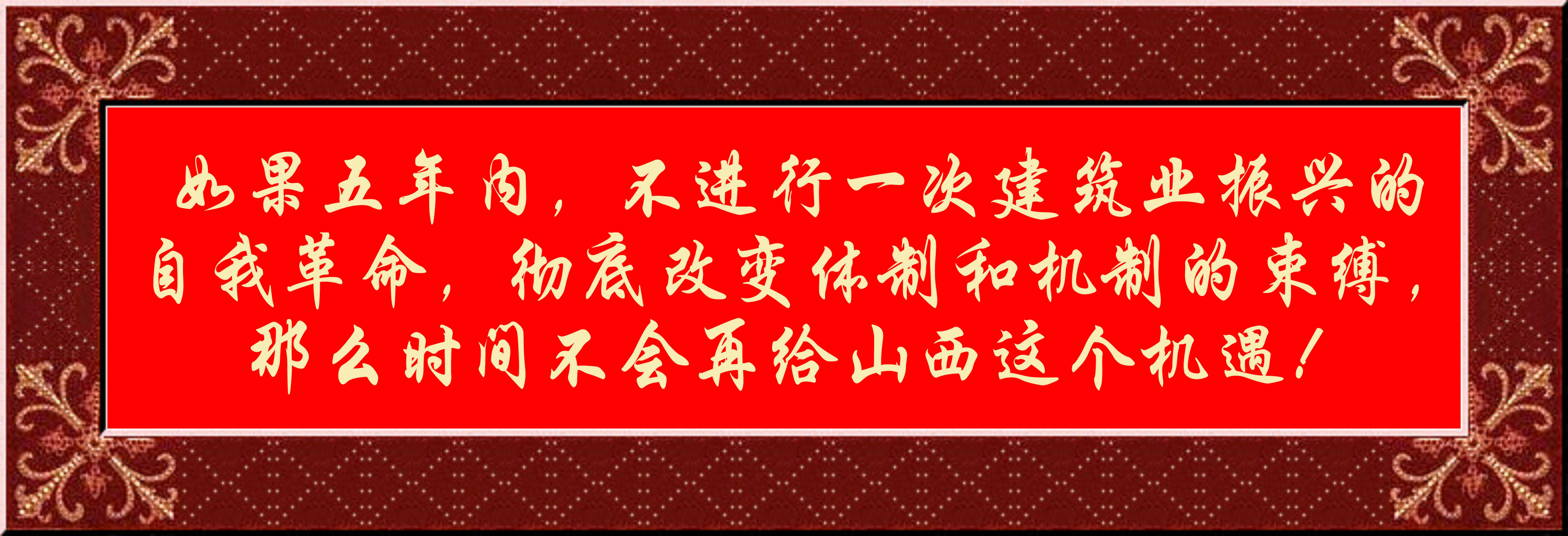 如果五年內(nèi),不進(jìn)行一次建筑業(yè)振興的自我革命,徹底改變體制和機(jī)制的束縛,那么時(shí)間不會(huì)再給山西這個(gè)機(jī)遇!