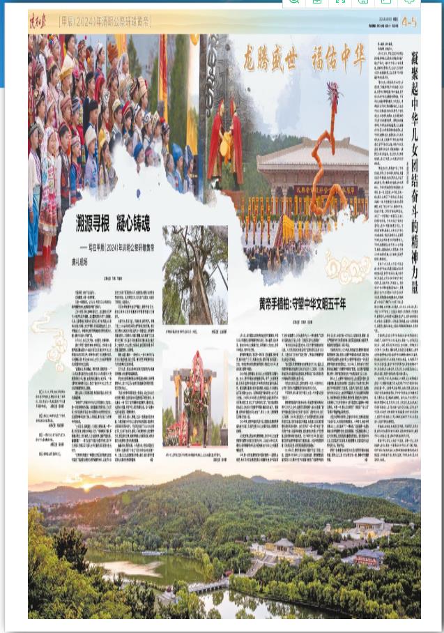 歲次甲辰,節(jié)屆清明。橋山毓秀,沮水鐘靈。祥風(fēng)惠暢,萬物滋榮。謹(jǐn)具鮮花雅樂之儀,恭祭軒轅黃帝。辭曰:
