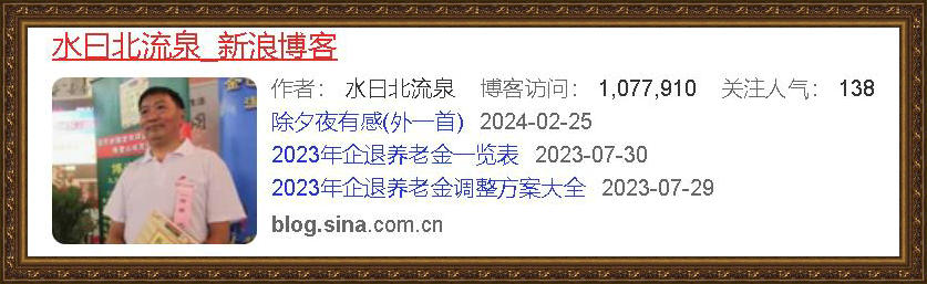 水曰北流泉:上海女婿四十年,知青老婆近衰年。晨練信步一萬米,立馬吟就五言詩。西北漢子勢不減,讀書萬卷學(xué)有止?
