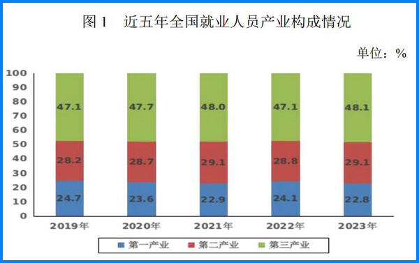 年末全國(guó)就業(yè)人員 74041 萬(wàn)人,其中城鎮(zhèn)就業(yè)人員 47032萬(wàn)人,占全國(guó)就業(yè)人員比重 63.5%。全國(guó)就業(yè)人員中,第一產(chǎn)業(yè)就業(yè)人員占 22.8%;第二產(chǎn)業(yè)就業(yè)人員占 29.1%;第三產(chǎn)業(yè)就業(yè)人員占 48.1%。