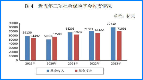 全年基本養(yǎng)老保險(xiǎn)、失業(yè)保險(xiǎn)、工傷保險(xiǎn)三項(xiàng)社會(huì)保險(xiǎn)基金收入合計(jì)79710億元,比上年增加8128億元,增長(zhǎng)11.4%;基金支出合計(jì)71091億元,比上年增加4969億元,增長(zhǎng)7.5%。