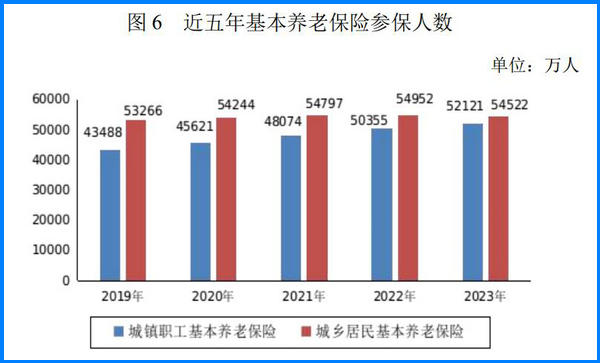 年末全國(guó)參加城鄉(xiāng)居民基本養(yǎng)老保險(xiǎn)人數(shù)54522萬(wàn)人, 其中實(shí)際領(lǐng)取待遇人數(shù)17268萬(wàn)人。